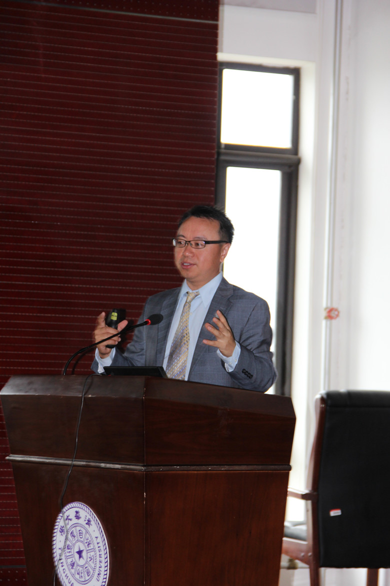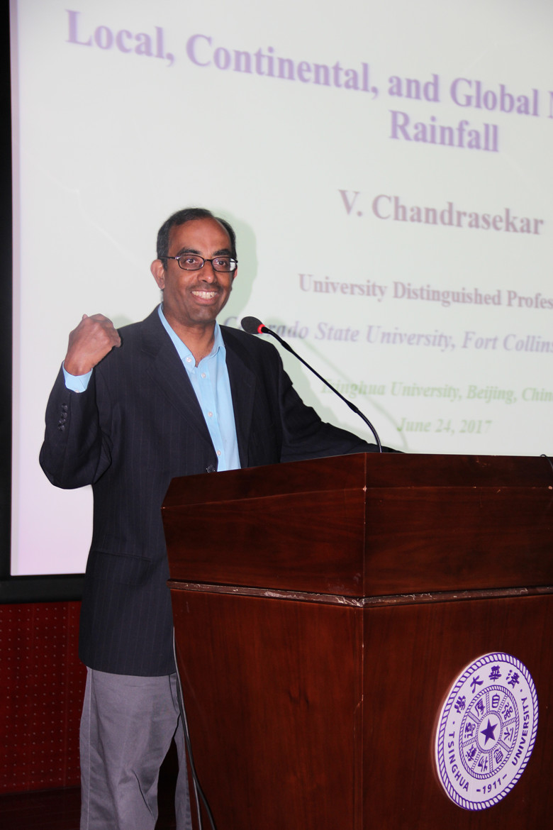美国科罗拉多州立大学V.Chandrasekar教授作了降雨多尺度测量的报告,深入浅出地分析了不同来源雨滴(台风、飓风等)的形状、密度特征,以及多种降雨测量手段,如雨滴测量器、雨量站、Radar以及卫星测量。教授以其丰富的经验向与会师生描述降雨测量历史,同时对多种雷达实时降雨产品及精度评估进行了介绍。