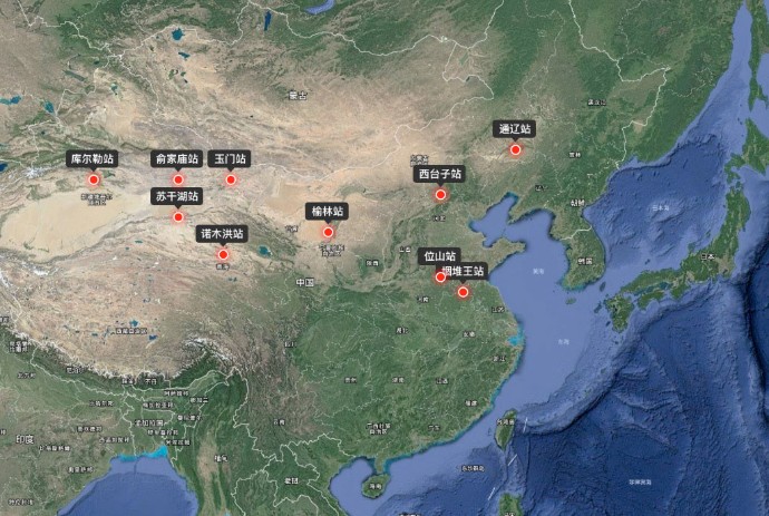 中国北方地区生态水文观测网站点分布图