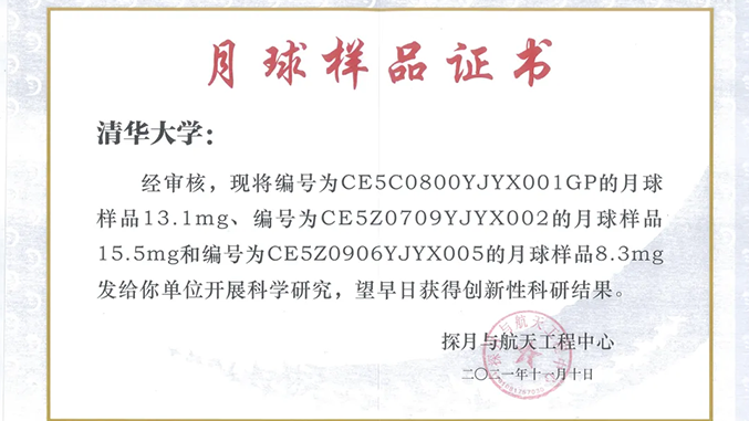 一份月亮到清华 —— 土木水利学院、机械工程系联合研究团队借用嫦娥五号月球科研样品获批
