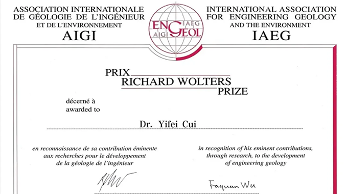 清华大学水利系青年教师崔一飞获得国际工程地质与环境协会Richard Wolters奖